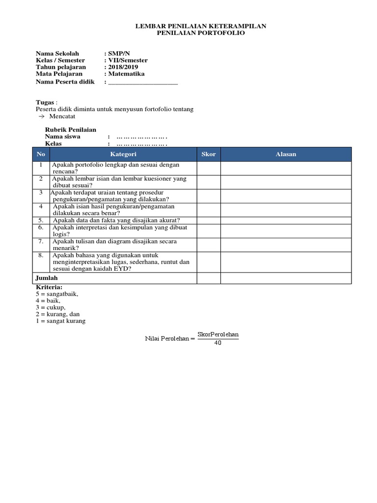 Portofolio Smp / Buku Penilaian Portofolio Pendidikan Kewarganegaraan Pendidikan Kewarganegaraan : Menyelesaikan persamaan dan pertidaksamaan linear satu variabel plsv dan ptlsv.